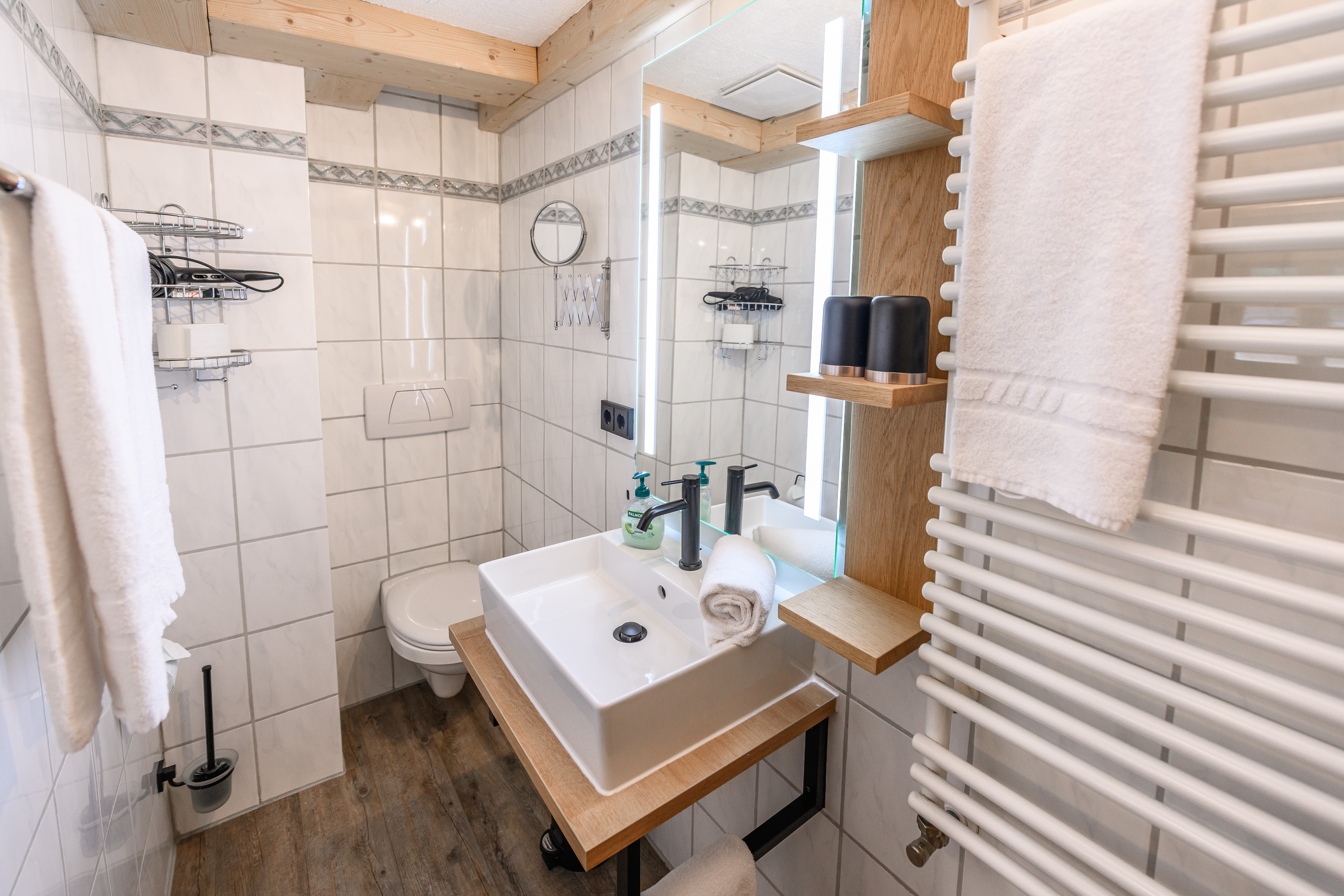 Auch hier bieten wir Ihnen ein gemütliches Schlafzimmer, Bad mit Dusche/WC und eine neu renovierte Wohnküche mit Essecke und gemütlicher Couch für entspannte Abende.