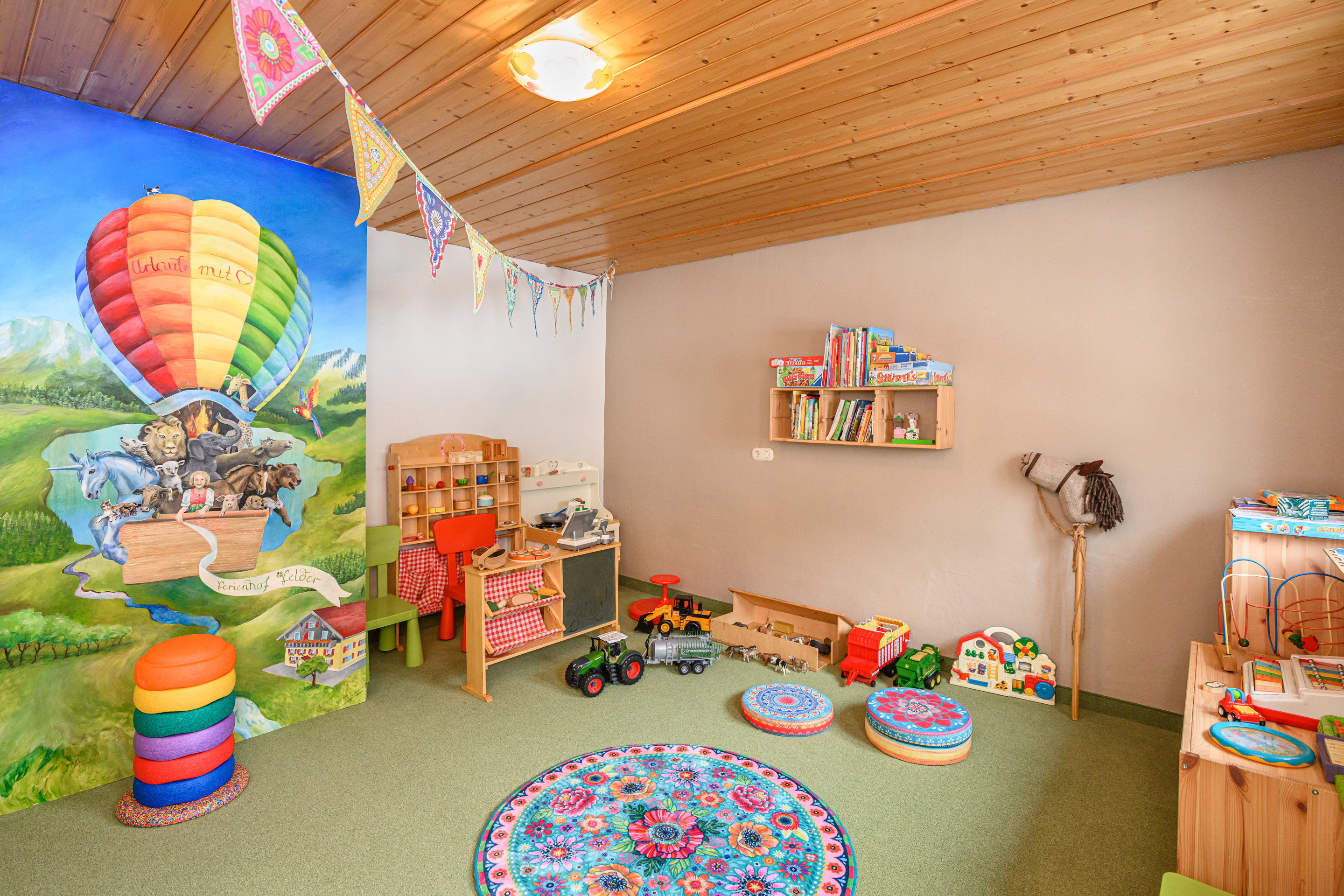 in unserem Spielzimmer. Hier haben wir allerhand Spielsachen für kleine und auch Bücher und Spiele für größere Kinder